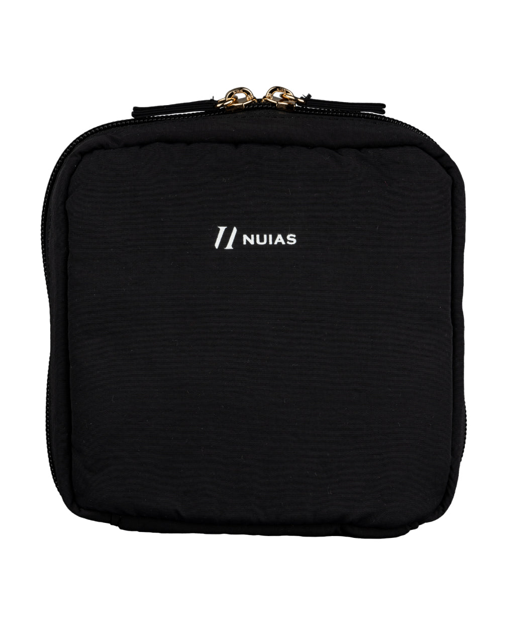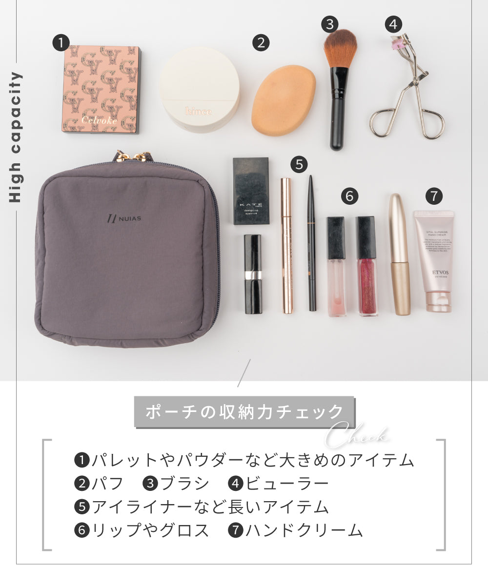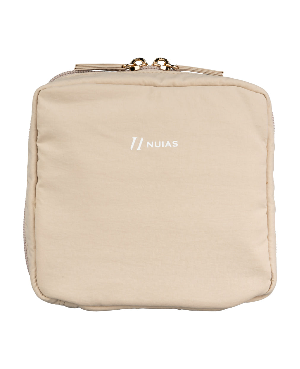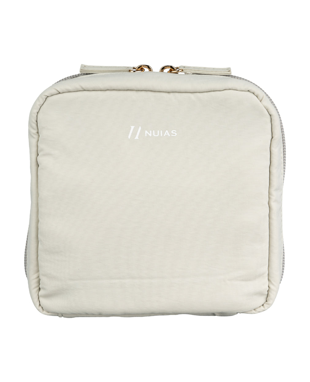 NUIASのスクエアメイクポーチは、安定して自立する設計と豊富なポケットで、毎日のメイクをスマートにサポートします。