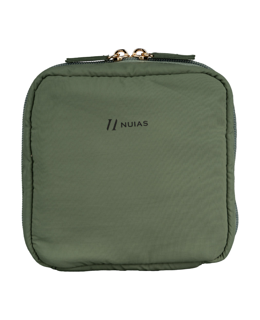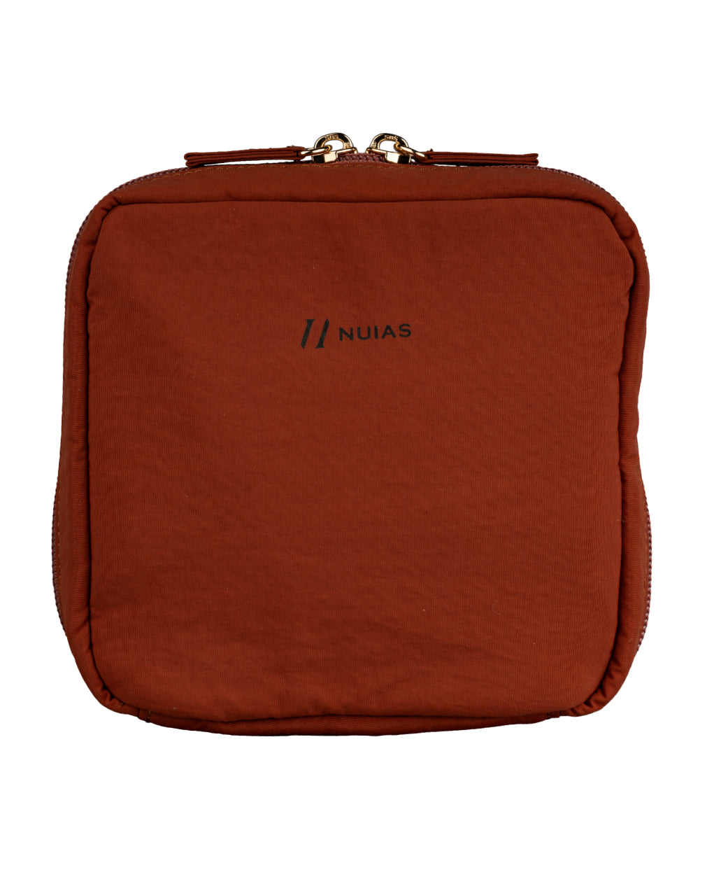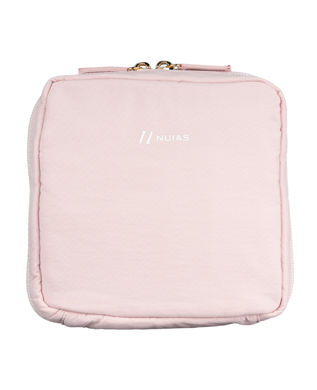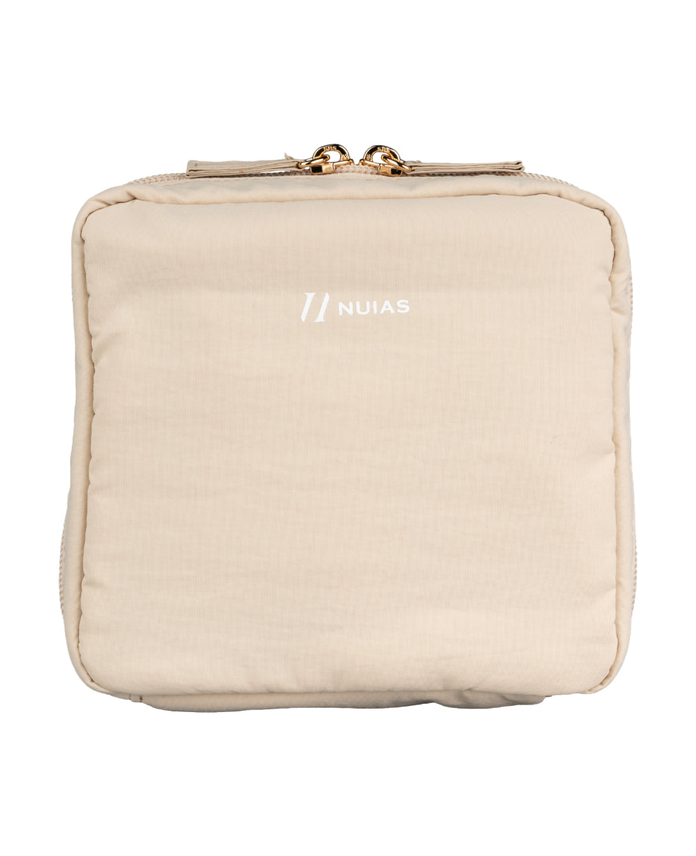 NUIASのスクエアメイクポーチは、安定して自立する設計と豊富なポケットで、毎日のメイクをスマートにサポートします。