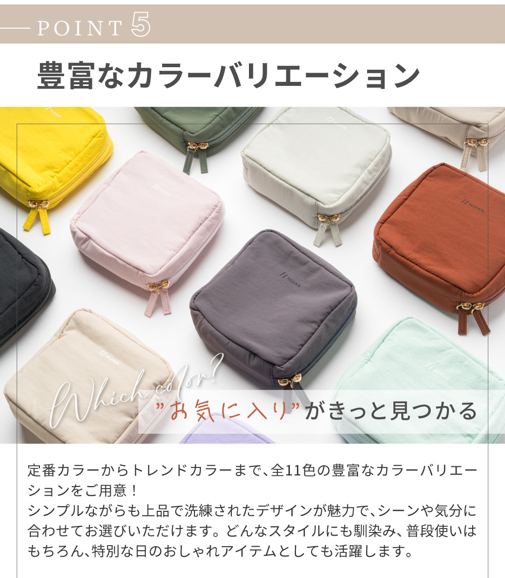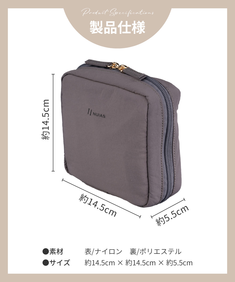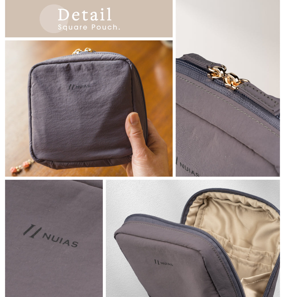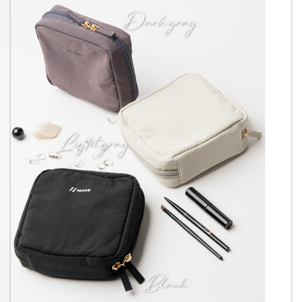 機能性とデザイン性を兼ね備えたNUIASのスクエアメイクポーチで、あなたの毎日をより快適に、美しく整えてみませんか。